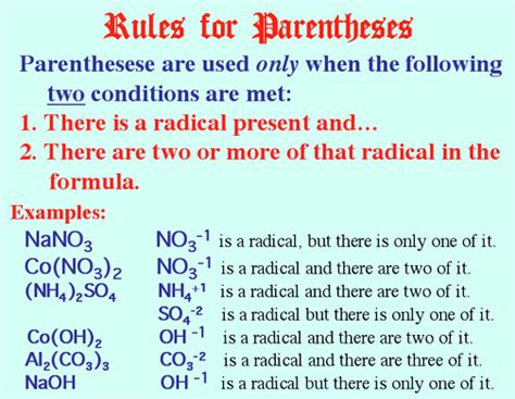 when to use parentheses in chemical formulas